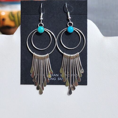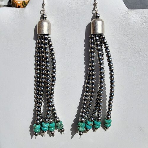Sterling Silver 5-strand Tassle with Kingman Turquoise Earrings