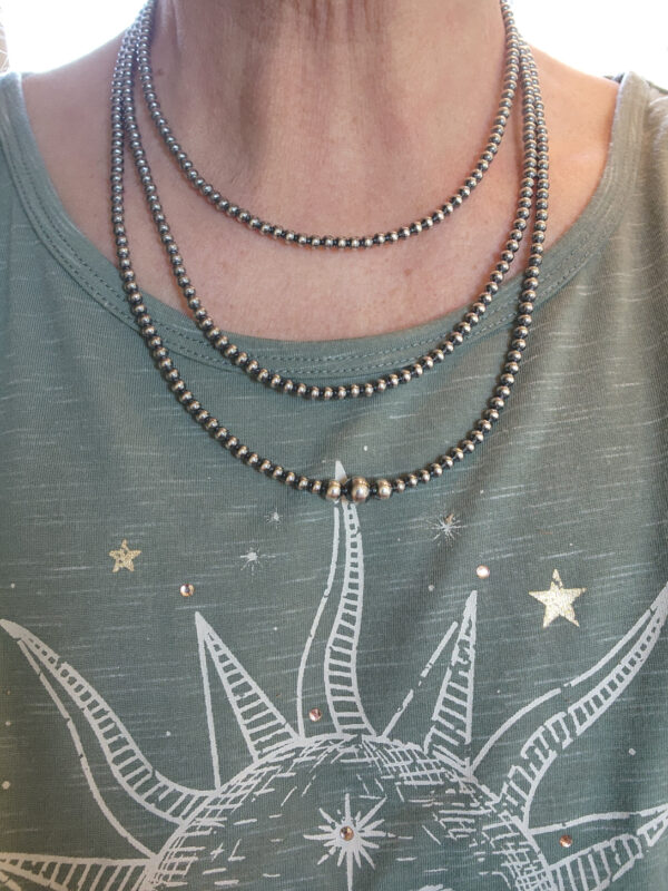 Oh. My. Gosh! Here is a great 60″ Navajo Pearl strand that is so so so versatile you can wear it as a very long strand, as a double strand or as a triple strand! You could probably wear it as 4 strands but that might be a little tight on some of us.