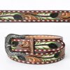 This beautifully hand-tooled, hand-painted all leather belt is perfect in every way! It can work for either men or women and would add a nice touch to any wardrobe. It comes with a really nice stamped buckle that can be swapped out for your trophy buckle easily.