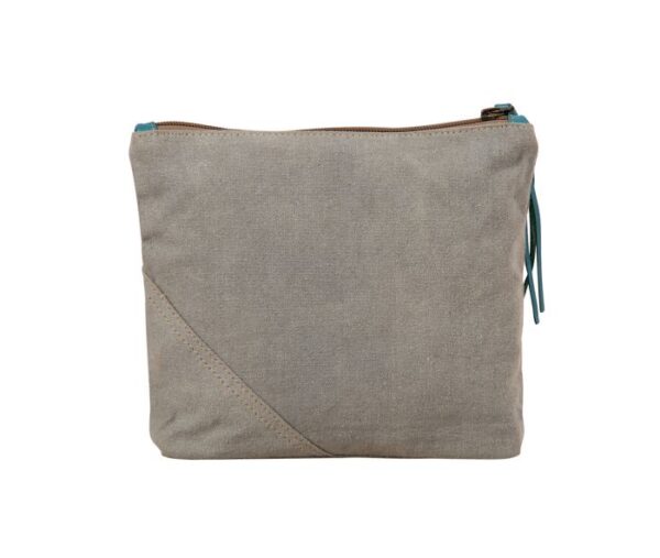 Discover the charming Chateau Margaux Pouch – an amazing clutch bag with a whimsical overprint on the front panel. Imagine the grandeur of French estates as you admire the specially stitched gray woven canvas bodice, complemented by a deep blue teal leather bottom accent. Complete with a matching leather tassel on the zipper close top, this pouch is perfect for any occasion!