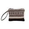 The Clarissa Falls Small Pouch is an exquisite accessory that seamlessly blends upcycled woven rug with a captivating tribal pattern. Its front panel, crafted from rich chocolate leather, harmonizes beautifully with the woven canvas back. The pouch features a zipper closure for security and a matching leather carrying strap.