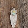 Crafted by Nature’s Hand: Our exquisite pendant, cast using the ancient cuttlefish bone technique, features a corn maiden with fine details and a Royston Turquoise stone. The textured silver surface adds an organic touch, reminiscent of windswept fields. Royston Turquoise, with its intoxicating meld of blue, green, and browns, evokes desert skies and galaxies. Whether you seek symbolism or simply crave a wearable work of art, this pendant celebrates the timeless allure of both corn and gemstones.”