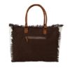 This bag features an amazing combination of design elements! Its imprinted ivory woven canvas is perfectly accented with special leather trim and fringe finishing touches. A zippered pocket on the bag adds convenience, while the roomy interior is ready to hold a bounty of essentials. Zipper close top for added security with carrying handles in matching leather.
