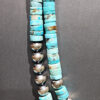 Here is a Kingman Turquoise and sterling silver Oxybead strand that is just perfect in every way! It’s 18″ long with a 2″ extender chain and has 7 and 14mm sterling silver Oxybeads on it. The turquoise is 7mm heishi beads.