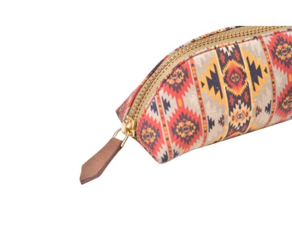 This beautiful multipouch features a gorgeous tribal-inspired upcycled woven rug in hues of sunset orange, corn yellow, brown and sandstone. Full zippered closure for added security, with plenty of room inside for your essentials.