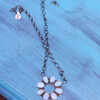 Here is a beautiful Scott Skeets signed Golden Hills pendant hung on a paperclip chain. This measures 20″ stretched out, including the pendant. The 8 beautiful stones are set in sterling silver in simple bezels with bead shots in between each stone on top and bottom.