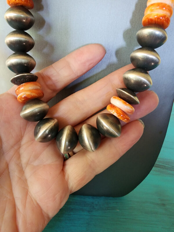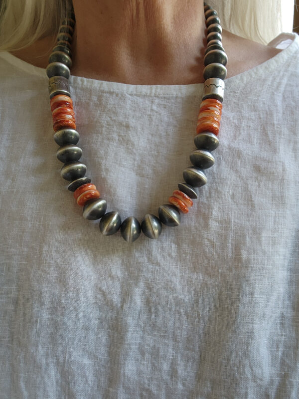 This is a Rose Martin handmade sterling silver and Spiny Oyster strand. I feel so inadequate calling it just a strand. This is so much more than just a strand.