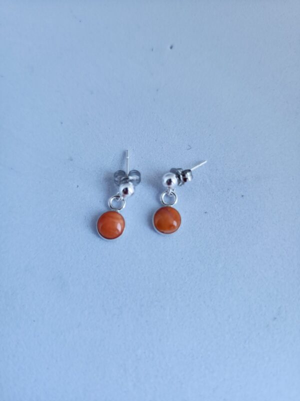 Here is a sweet little pair of spiny oyster post earrings set in sterling silver with a sterling ball at the top. These will work perfectly for one of those days you don’t feel like putting on the ritz and just want to go with t-shirt and jeans. You can wear these alone or pair them up with turquoise for a very nice look! Perfect for you little ones, as well. These have a 1/2″ drop.