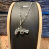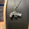 This sterling silver hand gun necklace is cute, cute! The detail on this is unbelievable! It is made of solid sterling silver and is hung on a small link chain. All the rage right now, grab this before it gets gone! I have a very limited supply.
