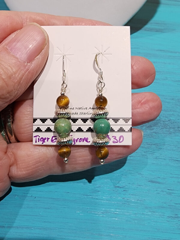 Tiger’s Eye, Tyrone Turquoise and Sterling Silver Bead Earrings